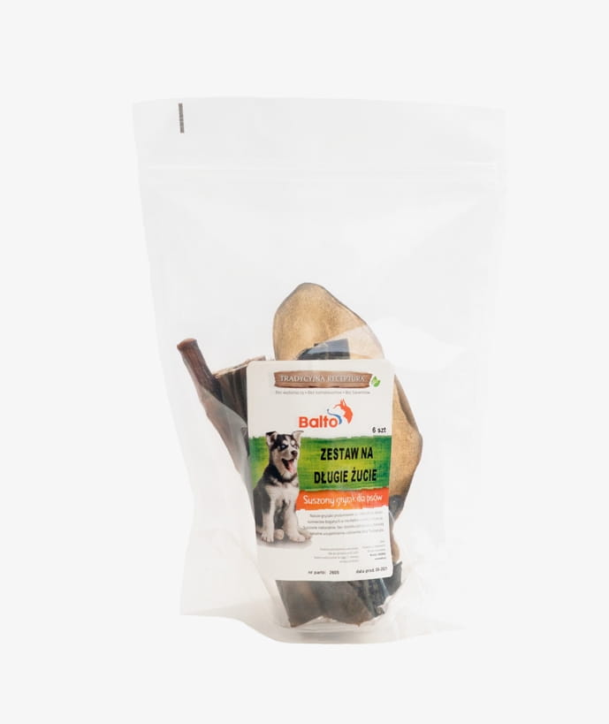 BALTO Zestaw gryzaków na długie żucie 6 szt. ogonek wołowy , ucho wołowe, skóra z dziczyzny, skóra wołowa