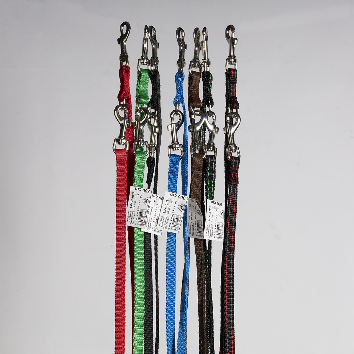 Smycz o długości 300 cm, szerokość 10 mm, przepinana.