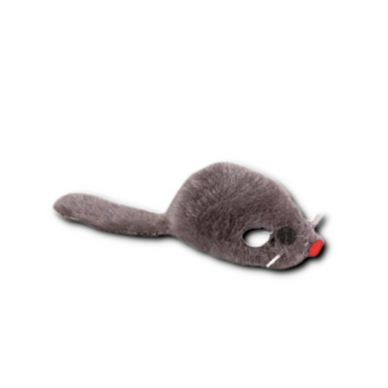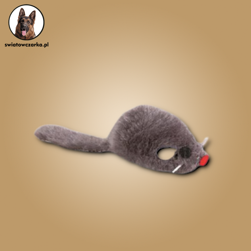 Zabawka dla kota: 5-centymetrowa myszka z szarym futerkiem. Myszka gwarantuje świetną zabawę dla kota – wzbudza zainteresowanie oraz jest łatwa do podrzucania i tarmoszenia.